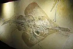 89. ^ Tischlinger, Helmut; Frey, Eberhard (2013). "A new pterosaur with mosaic characters of basal and pterodactyloid Pterosauria from the Upper Kimmeridgian of Painten (Upper Palatinate, Germany)". Archaeopteryx (in German). 31: 1–13.