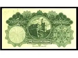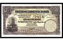 The Palestine pound or Palestine lira (Arabic: جُنَيْه فِلَسْطَينِيّ [junayh filastini]; Hebrew: פונט פלשתינאי [funt' palestinā'iy] or לירה פלשתינאית [lira palestināy'it]; symbol: £P),[1][2] was the currency of the British Mandate of Palestine from 1 November 1927 to 14 May 1948, and of the State of Israel between 15 May 1948 and 23 June 1952, until it was replaced with the Israeli pound.