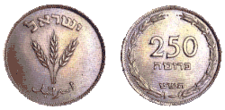 250 pruta | 32.2 mm | 14.1 g | Three palm branches; "Israel" in Hebrew and Arabic.