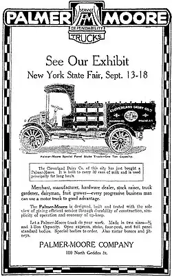 The Palmer-Moore Company (1906–1918) was a manufacturer of gasoline and air-cooled motor engines and marine engines in Syracuse, New York. The company began production of commercial trucks beginning in 1912. They were the third manufacturer in the city in the business and specialized in the manufacture of custom designs for local industries.