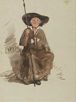 In the Middle Ages, a palmer (Latin: palmarius or palmerius) was a Christian pilgrim, normally from Western Europe, who had visited the holy places in Palestine and who, as a token of his visits to the Holy Land, brought back a palm leaf or a palm leaf folded into a cross. Palmers were often highly regarded as well-natured holy men because of their devotion to Christ along the pilgrimage. The word is frequently used as synonymous with "pilgrim".[1]
