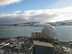 Palmer Station is located at 64.77°S, 64.05°W.[8] The majority of the science research conducted at Palmer Station revolves around marine biology. The station also houses year-round monitoring equipment for global seismic, atmospheric, and UV-monitoring networks, as well as a site for the study of heliophysics.[8] Palmer also hosts a radio receiver that studies lightning over the Western Hemisphere.