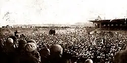 The congress was initiated by the Greater Poland’s Singers Association and Slovak Singers’ Union under the conception of non-political binding of the Slavic nations by dint of the culture. Choirs from various regions of Poland and Polish diaspora, groups from Czechoslovakia, Yugoslavia and Bulgaria have participated in it massively. Altogether over 17 000 singers have sung (other sources say about 18 000 or 20 000). 8 thousand men under leadership of professor Władysław Raczkowski sang the hymn Gaude Mater Polonia. The performance of Ojczyzna by Feliks Nowowiejski with his companionship of ten brass bands have caused the peculiar appealing of the audience. The number of people singing at once at the day of the opening is approximated to 12 000 or 13 000.