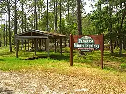 The community was known as Smith Springs until 1893 when some Bostonians purchased the land about the five springs here and renamed the town Panacea, after the goddess of universal remedy, because of the curative properties of the waters.[7][8] During the Civil War a large plant here supplied salt for much of western Florida.[9] Most of the development in the area was destroyed by a hurricane in 1928.[10]