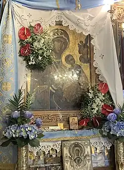 The festivities culminate on the day of the celebration, when the liturgy is celebrated, followed by a procession of the icon of the Virgin Mary through the village. The procession ends at the pier where there is a re-enactment of the finding of the icon of the Virgin Mary.[2] Another festival in honor of the Virgin Mary is held on 8 September, accompanied by a traditional feast.[6]