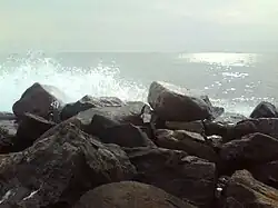 Panambur beach is beside the New Mangalore Sea Port. The rock wall forms the northern breakwater of the sea port entrance and protects vessels at anchorage from the weather and longshore drift. Walking on the breakwater rocks is forbidden.[4] The port has to abide by International Ship and Port Facility Security (ISPS) Code and keep the breakwater free of people.[5]