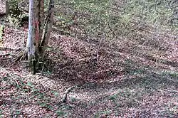 Pance is the site of four known mass graves associated with the Second World War. They are located in the woods northeast of the settlement and contain the remains of Slovene civilians that were accused of spying and were murdered by the Partisans in spring 1942. The Cirje 2 Mass Grave (Slovene: Grobišče Cirje 2) is also known as the Underhill Mass Grave (Grobišče Pod grmado).[6] The Cirje 3 Mass Grave (Grobišče Cirje 3) is also known as the Ravne Mass Grave (Grobišče Ravne).[7] The Cirje 4 Mass Grave (Grobišče Cirje 4) is also known as the Cirje Mass Grave (Grobišče Cirje).[8] The Cirje 5 Mass Grave (Grobišče Cirje 5) is also known as the Big Ravine Mass Grave (Grobišče Velika Draga).[9] The graves are marked with index numbers on trees.