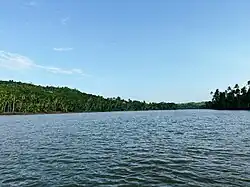It is navigable for small craft between the lake and the Höhnel Cataracts, a series of rapids.[10] Below the Höhnel Cataracts, it has numerous tributaries, and many islands with villages on them. The stream is strongest above Koleni, within 5 miles of the Pangani Falls, where the river is narrow. This section is not navigable for any considerable distance on account of the falls, which are about 30 miles (48 km) from the mouth. Approximately 4 miles (6.4 km) from the mouth, dense mangrove swamp covers the flatland between the hills on either side. In this area, near Teufelsfelsen, are higher land, a fertile area, and the arid Masai Steppe.[9] On this bank is Mount Kovu Kovu, 360 feet (110 m) in height, while on the south bank is a ridge 400 feet (120 m) high. Pombwe, one of the principal settlements on the river, is situated about 1 mile (1.6 km) west of Kovu Kovu. Above Pombwe, the West African oil palm grows, while below Pombwe, the trees are chiefly areca and coconut palms.[11] The village of Lemkuna and the hamlet of Ngage are on the river's west bank, while Mvungwe and Meserani are on its eastern bank.[12]