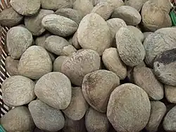 The kernels may be ground up to form a thick black gravy called rawon. Popular dishes include nasi rawon, beef stew in keluwek paste, popular in East and Central Java,[16] and sambal rawon, rawon stew made with beef or chicken, also made in East Java.[17] In West Java and Jakarta, gabus pucung, snakehead fish in pucung paste soup, is a popular traditional dish in Betawi cuisine.[18] The Toraja dish pammarrasan (black spice with fish or meat, also sometimes with vegetables) uses the black keluak powder. In Singapore and Malaysia, the seeds are best known as an essential ingredient in ayam (chicken) or babi (pork) buah keluak,[19][20] a mainstay of Peranakan cuisine. The Dusun tribe of Borneo use this pounded kernel as main ingredient for making local signature dish called bosou,[21] a sour fermented fish.