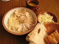 | Main ingredients | lavash bread, cheese, onions, and boiled water |