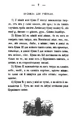 A page from Panteleimon Kulish's Gramatka, printed in 1857 in Saint Petersburg, showing suggestions for teachers in Ukraine