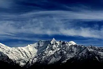 Panwali Dwar is a mountain of the Kumaun Himalayas located in the Bageshwar district of Uttarakhand, India. The elevation of Panwali Dwar is 6,683 metres (21,926 ft) and its prominence is 763 metres (2,503 ft). It is 55th highest located entirely within the Uttarakhand. Nanda Devi, is the highest mountain in this category. It lies on southern wall of Nanda devi sanctuary. Its nearest higher neighbor Maiktoli 6,803 metres (22,320 ft) lies 8.2 km WSW. It is located 2.6 km SW of Nanda Khat 6,611 metres (21,690 ft) and 9.2 km NE lies Nanda Devi East 7,434 metres (24,390 ft).