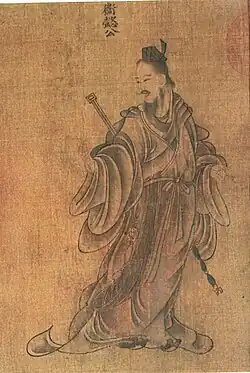 The jiaolingpao became a prominent form of attire in the Han dynasty; it was mainly worn by men, although it was sometimes worn by women. Even with the rising popularity of jiaolingpao, women continued to wear shenyi.[4]: 12 In the Han dynasty, jiaolingpao was typically worn by the members of royalty and by the aristocrats as an outerwear.[16] It was also the uniform of government officials.[16] Around the 206 BC, the jiaolingpao worn by elders had large sweeping sleeves which would be tied tightly to the wrist.[17]: 529 The jiaolingpao could be found in different length; the jiaolingpao, which could reach down to the ankles, were usually worn by scholars or elderlies whereas knee-length jiaolingpao were worn by warriors and heavy labourers.[4]: 13 [6]: 217 Elderlies started to wear the ankle-length jiaolingpao after 206 BC.[6]: 217