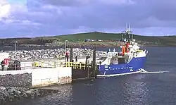 Crofting is the mainstay of island life. Sheep form the backbone of the agricultural economy but a diversity livestock are kept, including cattle, pigs, goats, chickens, ducks and geese. Vegetable are grown too, often in the shelter of circular walls, such plots being known as 'planti crubs' – these were originally used to propagate kale (cabbage) seedlings and were built well away from other buildings where they would be safe from mice. The seedlings would then be transplanted to kaleyards (gardens) near the houses. Fishing is still conducted but on a relatively small scale. There is a post office at the pier, but no shop. Mains electricity only came to the island at the close of the 20th century.[38] The Papa Stour Project is a Christian supported housing service offering accommodation to men with drug and alcohol issues.[39] Ferries now sail across the Sound of Papa to West Burrafirth on the Shetland Mainland. The crossing takes 45 minutes, and although the Snolda carries cars, there is only one short road on the island.[8] For visiting yachts the four main voes provide good shelter, but the strong tides in both the Sound of Papa and to the north west require considerable care.[5]