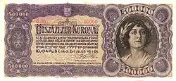 50 korona | 150 × 95 mm | Portrait of Ferenc II Rákóczi by Ádám Mányoki | Value in Hungarian and 5 foreign languages | 11 July 1921 | 30 June 1927 |