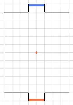 A "ball" is marked as a dot in the center of the pitch. Players alternately move the ball to a new point by drawing a line from its current position to a new one. Each move must be to a point orthogonally or diagonally adjacent. The ball cannot be moved beyond the boundary of the pitch, nor along a line that has already been drawn (including the boundary of the pitch).