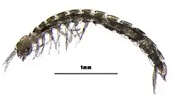 Parabathynellidae is a family of crustaceans belonging to the order Bathynellacea.[1] These creatures are characterized by their slender bodies, reduced eyes, and elongated antennae. They are typically less than 1 mm in length, making them difficult to observe without the aid of a microscope. Parabathynellidae are found in freshwater habitats around the world, including streams, springs, caves, and aquifers.[2]
