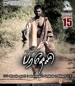 The music of Paradesi was composed by G. V. Prakash Kumar, with cinematography by Chezhiyan and editing by Kishore Te and L. V. K. Das. The film was released on 15 March 2013 to positive reviews from critics. It won the National Film Award for Best Costume Design, and three Filmfare Awards South: Best Tamil Director (Bala), Best Tamil Actor (Atharvaa) and Best Tamil Supporting Actress (Dhansika).
