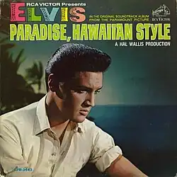 Paradise, Hawaiian Style is the thirteenth soundtrack album by American singer and musician Elvis Presley, released by RCA Victor in mono and stereo, LPM/LSP 3643, in June 1966. It is the soundtrack to the 1966 film of the same name starring Presley. Recording sessions took place at Radio Recorders in Hollywood, California, on July 26 and 27, and August 2, 1965. It peaked at number 15 on the Top LP's chart.[2]