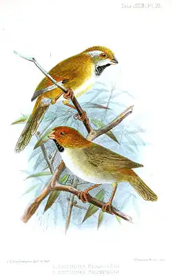- ^ BirdLife International (2018). "Suthora verreauxi". IUCN Red List of Threatened Species. 2018: e.T22716829A132113641. doi:10.2305/IUCN.UK.2018-2.RLTS.T22716829A132113641.en. Retrieved 17 November 2021.