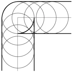 A parallel curve of a given (progenitor) curve is the envelope of a family of congruent (equal-radius) circles centered on the curve. It generalises the concept of parallel (straight) lines. It can also be defined as a curve whose points are at a constant normal distance from a given curve.[1] These two definitions are not entirely equivalent as the latter assumes smoothness, whereas the former does not.[2]