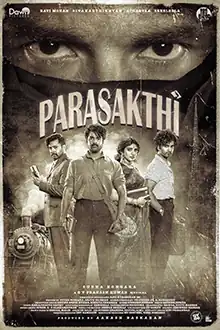Parasakthi (transl. The Supreme Power) is an upcoming Indian Tamil-language political period drama film[a] directed by Sudha Kongara and produced by Dawn Pictures. The film stars Sivakarthikeyan, Ravi Mohan, Atharvaa and Sreeleela (in her Tamil debut) in the lead roles, alongside Dev Ramnath, Prithvi Rajan, Guru Somasundaram, Basil Joseph, Papri Ghosh, and Rana Daggubati. Based on true events, the story revolves around the Anti-Hindi agitations in Tamil Nadu that happened in 1965.