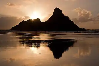 Paratahi Island is located off the west coast of the Auckland Region near Karekare, approximately 370 metres (1,210 ft) southwest of Karekare Point. The island is separated in half by a saddle, with a significantly taller 20 m (66 ft) summit on the northern side of the island.[1][2] The upper portions of the island are vegetated on the eastern side, but less vegetated on the western side that faces the Tasman Sea.[3]