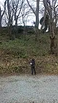 Baynes also found some probable fragments of box tiles, suggesting that a house heated by a hypocaust stood close by.[8] Prichard reported that 'well constructed walls', one encasing a human skeleton, had been found during the extension of Parciau farmhouse, southwest of the fort, and this may possibly represent a prosperous Roman building. However, these walls were attributed by Prichard's informants to John Bodvel, a famous inhabitant of the 1600s,[3] and a date more recent than Roman may be likely.[4]