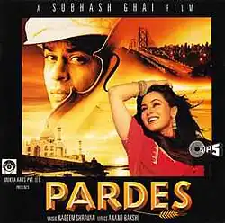 Pardes (transl. Foreign land) is a 1997 Indian Hindi-language musical romance film directed, produced, and co-written by Subhash Ghai under his banner Mukta Arts. It stars Shah Rukh Khan, and newcomers Mahima Chaudhry and Apurva Agnihotri in lead roles, with Alok Nath, Amrish Puri and Himani Shivpuri in supporting roles. The film was shot at various locations in the United States (Los Angeles, Las Vegas), Canada (British Columbia, including Vancouver) and India (Uttarakhand and Uttar Pradesh, including Agra).