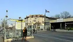 However, critics and many of the public were hostile to the libellules in particular, and criticized the green as "German" and the lettering as "un-French"[6] and, according to critic André Hallays in Le Temps, "confus[ing to] little children who are trying to learn their letters and ... stupefy[ing to] foreigners".[21] On the Champs-Élysées, for example at Marbeuf (now part of Franklin D. Roosevelt), simple stone walls with discreet carved signage were used instead,[10] and a plain design was also used at Bourse.[22][23] Unhappiness with Guimard's 1904 design for the Opéra station,[24] described in Le Figaro as having "contorted ramps" and "enormous frog-eye lamps",[25] and increasing costs led to the CMP severing its relationship with him.[5][22] The entrance at Opéra was instead designed by Joseph-Marie Cassien-Bernard, in classical marble.[22][25] The CMP bought Guimard's molds and rights[22] and a total of 141 of his entrances were ultimately produced, the last in 1913.[20]