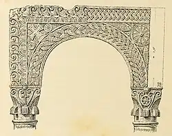 The present ciborium is thus the result of reconstructions based on inscriptions. Its restoration is due to Alessandro Da Lisca, inspector of the monuments of Verona,[35] who notes, however, that in all probability, as evidenced by the discovery of as many as seven archivolts, it must have originally been far more sumptuous and complete.[note 14][36]