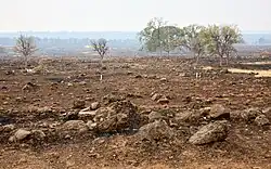 As it spread north, the fire established itself in the Ishi Wilderness, an area with little history of wildfire, heavy vegetation cover, and few easy access routes for ground-based firefighting personnel.[18] The fire produced pyrocumulus clouds and burned actively into the night.[24] Despite the efforts of ground crews and three night-flying helicopters, the wind-driven fire continued to burn largely north—parallel to California State Route 99—and into Tehama County.[25] At 3:00 a.m. Cal Fire announced that the fire had so far burned 45,549 acres (18,433 ha);[26] this made it the largest wildfire of the year in California, surpassing the 38,664-acre (15,647 ha) Lake Fire in Southern California's Santa Barbara County.[27] During the fire's first 12 hours, it grew at a rate of 4,000 acres (1,600 ha) per hour.[4]