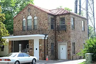 The Park Hill Fire Station and Water Company Complex is a collection of historic public facilities at 3417-21 Magnolia Street in North Little Rock, Arkansas. The complex consists of a fire station, a water company office, two concrete reservoirs, and two stone pump houses, all built in 1938 with funding support from the Works Progress Administration. The fire station and water company office are distinguished architecturally by their fieldstone exteriors and Mediterranean style, including red tiled roofs. They were designed by the Little Rock firm of Brueggeman, Swaim and Allen.[2]