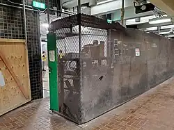In July 1922, the Boston Transit Commission proposed the addition of a side platform adjacent to the outer northbound streetcar track, with a passageway under Tremont Street leading to two new entrances at Temple Place.[28] Opening the Winter Street Concourse to passengers was also proposed, but was soon rejected by the Department of Public Utilities in favor of continued use as storage space for adjacent businesses.[29] A more ambitious 1927 plan by one of the BERy trustees called for new side platforms on both sides of the streetcar level, with a sub-passage connecting the four streetcar platforms, as well as the Temple Place entrances and Winter Street passageway.[30] In 1933, the two stairway headhouses on the east side of Tremont Street were replaced with low walls, as had previously been done at Scollay Square and Adams Square.[31]