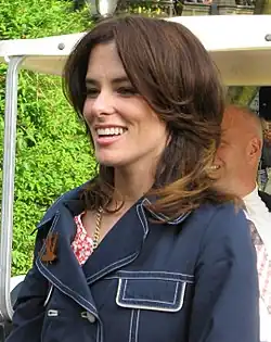 Posey's two screen outings in 2004 —Laws of Attraction and Blade: Trinity— received wide theatrical releases. The courtroom-based romantic comedy Laws of Attraction featured her as a divorcing designer, opposite Pierce Brosnan and Julianne Moore. The film was panned by critics and flopped at the box office.[38] In Blade: Trinity, she played a vampire leader, alongside Wesley Snipes, Ryan Reynolds, and Jessica Biel.[39] Blade made $132 million worldwide despite a negative critical reception.[40] In 2005, she portrayed an "unfunny stand-up comic" and the close friend of a gay man in Craig Chester's comedy Adam & Steve,[41] and acted off-Broadway in David Rabe's Hurlyburly. Chester likened her to Bette Davis, saying, "She's very passionate about her work. She's obsessed with the art of acting. She's disciplined, opinionated, and has high standards."[42]