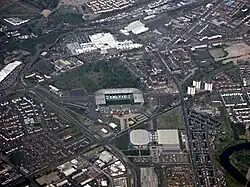 There are also two bowling clubs and a derelict sports ground (Helenvale Park, formerly used by the Glasgow Corporation Transport department which had a large bus and tram depot nearby)[17][18][19] in the vicinity – Crownpoint Sports Complex, a replacement modern outdoor athletics track, is located beyond the western border of the district adjacent to St Mungo's Academy.[20] After the 2014 Commonwealth Games was held in Glasgow, Parkhead now has international-class sporting facilities within walking distance: the Commonwealth Arena and Sir Chris Hoy Velodrome are located in nearby Dalmarnock.