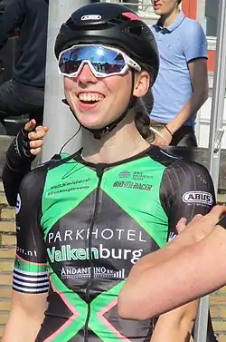 Former rider in the team Esra Tromp retired from racing to take on the role as team manager for Parkhotel Valkenburg in 2018 after sustaining multiple physical setbacks in 2017.[2] Nancy van der Burg who had stepped up to UCI level in 2018 from club team Jos Feron Lady Force, but in May it was announced that she would be stepping back from racing with Parkhotel Valkenburg, as she was unable to balance racing professionally and working as a sport nutrition coach at LottoNL–Jumbo.[3][4]