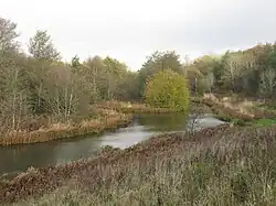 The park's eastern section, Darnley Mill Park, is formed by a glen through which the Brock Burn flows and was once the location of a lime works[11] which processed stone from nearby quarries (all long since closed).[12] On the other side of the park is Southpark Village, a neighbourhood of similar size and character to Parkhouse, but which adjoins a retail park including the first full-service supermarket in Scotland by the Sainsbury's company (opened 1992)[13][14] as well as a large B&Q.