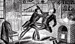 John White Webster (May 20, 1793 – August 30, 1850) was a lecturer at the new Harvard Medical College. He was described by Holmes as "pleasant in the lecture room, rather nervous and excitable."[4] Many of Webster's classroom demonstrations involved some of the latest chemical discoveries. George F. Hoar mentioned that Webster's lectures were "tedious", at least for a non-chemistry major, but that he "was known to the students by the sobriquet of 'Sky-rocket Jack,' owing to his great interest in having some fireworks at the illumination when President Everett, his former classmate, was inaugurated. There was no person less likely to commit such a bloody and cruel crime as that for which he was accused."[5] Many anecdotes suggest his classroom demonstrations were livened by pyrotechnic drama, and on one occasion the President of Harvard warned that some of them were dangerous if an accident occurred.