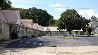 The Parkway Courts Historic District encompasses a historic tourist accommodation at 815 Park Avenue in Hot Springs, Arkansas. It is a U-shaped tourist court, with 48 units and a building housing an office and manager's residence. The units come in three styles, some with larger sleeping and living spaces, and some with kitchenettes. Each unit is highlighted architecturally by a steeply pitched gable over the entrance. The buildings are brick. The units were built in 1943, and the manager's residence/office in 1950, after the original burned down. It is one of the city's oldest surviving tourist courts.[2]