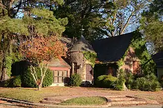 The Parnell-Sharpe House is a historic house at 302 North 2nd Street in McGehee, Arkansas. The 1+1⁄2-story brick house was built in 1936, and is probably unique in Desha County as an example of French Eclectic architecture constructed using local materials. The house is built out of red tapestry brick, and has a roughly T-shaped plan, with a projecting element in the front (west) facade that includes a tower topped by a conical roof. To the north is a single-story section that was originally a garage, but has been converted to interior space.[2]