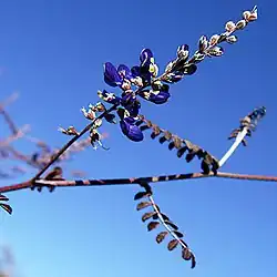 Marina parryi is a species of flowering plant in the legume family known by the common name Parry's false prairie-clover. It is native to the deserts of the southwestern United States and northern Mexico. This is a perennial herb producing stiff, branching stems 20 to 80 centimeters long. It is coated with glands and rough hairs. The leaves are made up of several pairs of small oval leaflets no more than 6 millimeters long. The inflorescence is a raceme of deep blue and white bicolored flowers each under a centimeter long. The fruit is a legume pod containing a single seed.