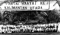 With the help of Salleh Masri, A. M. Azahari established the Parti Rakyat Brunei (PRB), the country's first officially recognised political party, on 21 or 22 January 1956,[4] as an offshoot of the Malayan People's Party.[5] On 15 August, the party finally registered and received legal status, provided that it limited its operations to Brunei.[6] In addition to fighting for independence for the entire archipelago and preserving Sultan Omar Ali Saifuddien III's position by establishing the North Borneo Federation, the anti-colonialism ideology of the party intended included political, economic, and social ones. PRB aimed to create a sovereign, democratic Malay nation free from British influence that ensures the security and well-being of its citizens under a monarchy.[7] The majority of its members were non-aristocratic Malay people who were against both monarchy and colonial authority.[5]