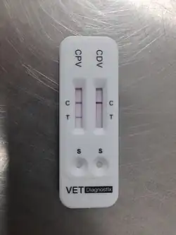 - ^ Oh J, Ha G, Cho Y, Kim M, An D, Hwang K, Lim Y, Park B, Kang B, Song D (2006). "One-Step Immunochromatography Assay Kit for Detecting Antibodies to Canine Parvovirus". Clin. Vaccine Immunol. 13 (4): 520–4. doi:10.1128/CVI.13.4.520-524.2006. PMC 1459639. PMID 16603622.