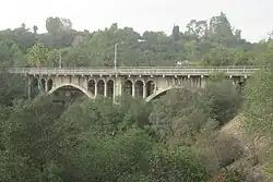 At the time, the Indiana Colony was a narrow strip of land between the Arroyo Seco and Fair Oaks Avenue. On the other side of the street was Wilson's Lake Vineyard development.[25] After more than a decade of parallel development on both sides, the two settlements merged into the City of Pasadena.[25]