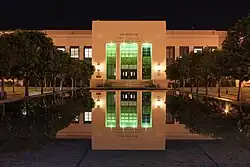 On March 20, 2003, on the day the United States launched Operation Iraqi Freedom, many students led by the Students for Social Justice, protested on campus against the war. Protesters went through the administration building requesting students to join their cause. Three students were arrested by campus police.[12] That same year, voters approved a bond measure for about $150 million that improved campus facilities. A significant portion of these funds were earmarked for the construction of a new building to house the college's art and music departments. The Alumni Commons, the Aquatic Center, the Boone Sculpture Garden, and the Galloway Plaza have all replaced what were once campus parking lots. A new fourth floor parking structure (Lot 5) and a new bus parking area were completed in 2005.