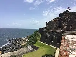 Paseo del Morro (English: Morro Promenade), is a waterside, riprap-lined, and breakwater-protected pedestrian promenade about 1.5 miles (2.4 km) in length, located in the historic district of Old San Juan in Puerto Rico. Built in 1999 as an extension of an existing 18th-century maintenance walkway on the southwestern section of the wall located on the final stretch of Paseo de la Princesa (Princess Promenade), the promenade is a contemporary construction running adjacent and parallel to the western section of the Walls of Old San Juan, which originally stood directly exposed to the waters of San Juan Bay. It was designated a National Recreational Trail in 2001.[1][2]