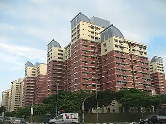 The architecture of Housing and Development Board (HDB) blocks in Pasir Ris is inspired by the nearby beach and sea elements.[7] This can be seen in the lighthouse-shaped turrets formed by columns of balconies, void deck and precinct boundary walls with porthole-shaped openings, and windows/balconies framed within clam-shaped openings.[16]