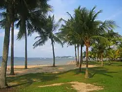 The first reference to a village of Pasir Ris, Passier Reis (or Passier Rice), appeared in early 1800s. The second part of the city name, Ris, in Malay, means bolt rope.[5] Pasir Ris may also mean "white sand" in Malay.[6] Pasir Ris Town is named after the long stretch of sandy white beach along the north-east coastline of Singapore, facing Pulau Ubin.[7]