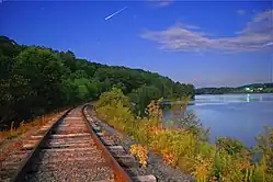![]() A moonlight view of the Passagassawakeag River along the tracks of the Belfast and Moosehead Lake Railroad just beyond the old Upper Bridge a little more than a mile inland from Belfast, ME, where it empties into Belfast Bay. | |
